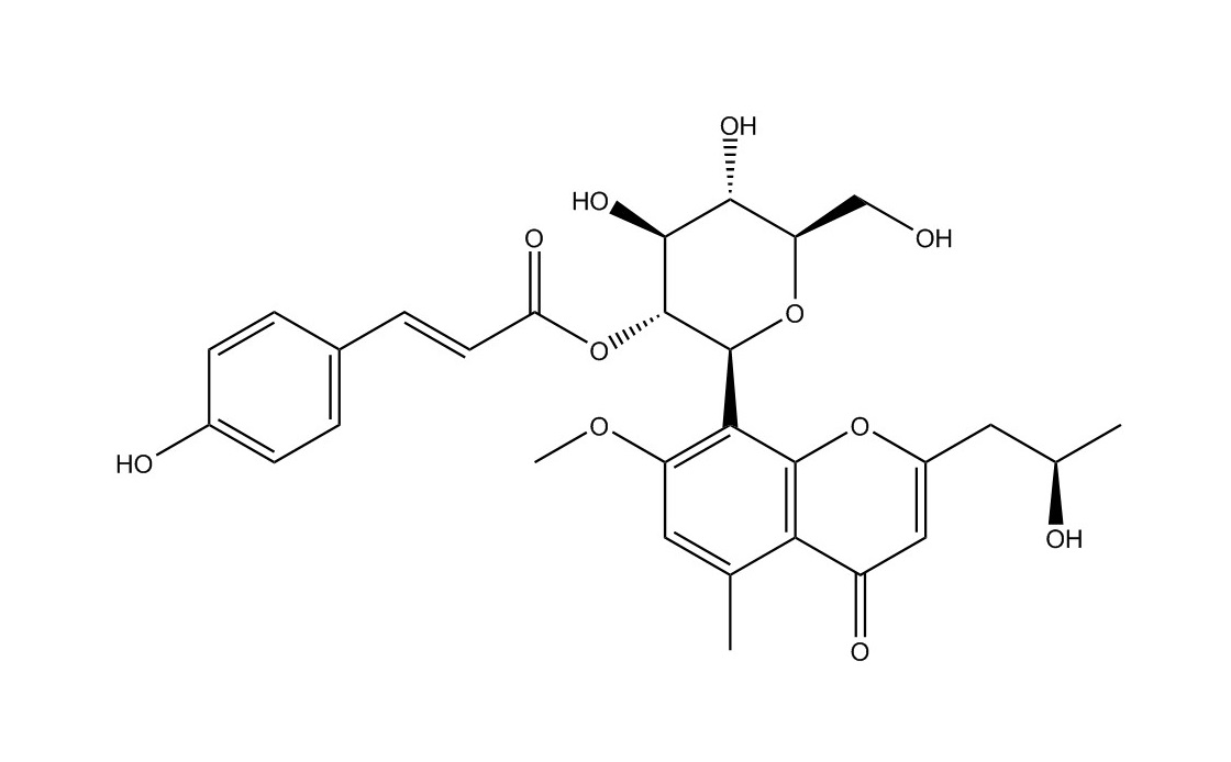 【英文別稱】 8-[2-O-[(2E)-3-(4-Hydroxyphenyl)-1-oxo-2-propen-1-yl]-beta-D-glucopyranosyl]-2-[(2R)-2-hydroxypropyl]-7-methoxy-5-methyl-4H-1-benzopyran-4-one